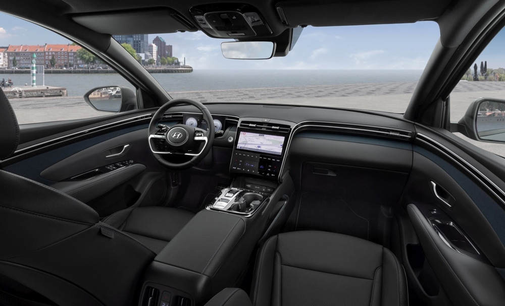 Jaunā Tucson interjers vietām spēs iejūsmināt pat premium automašīnu izlutinātus ļaudis. Tas sastāv no gaumīgiem un elegantiem materiāliem, kur sava vieta atradusies gan matēti mīkstām plastmasām, gan spožai klavierlakai. Visās versijās, izņemot lētāko Comfort, aiz jaunā dizaina stūres panelī iestrādāts taisnstūra virtuāls mērskalu ekrāns. „Pulksteņu“ dizainu var izvēlēties pēc saviem ieskatiem vai arī tie maina izskatu un krāsu atbilstoši braukšanas režīmam. Pagriezienos un pirms tiem attēlu pārtrauc uznirstoši apļi ar attēliem no „aklo zonu“ kamerām.