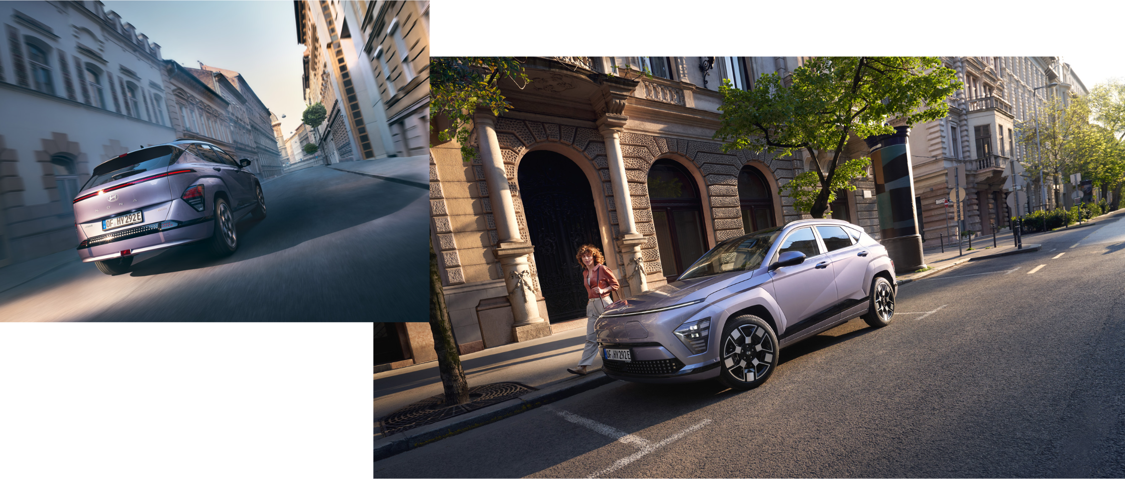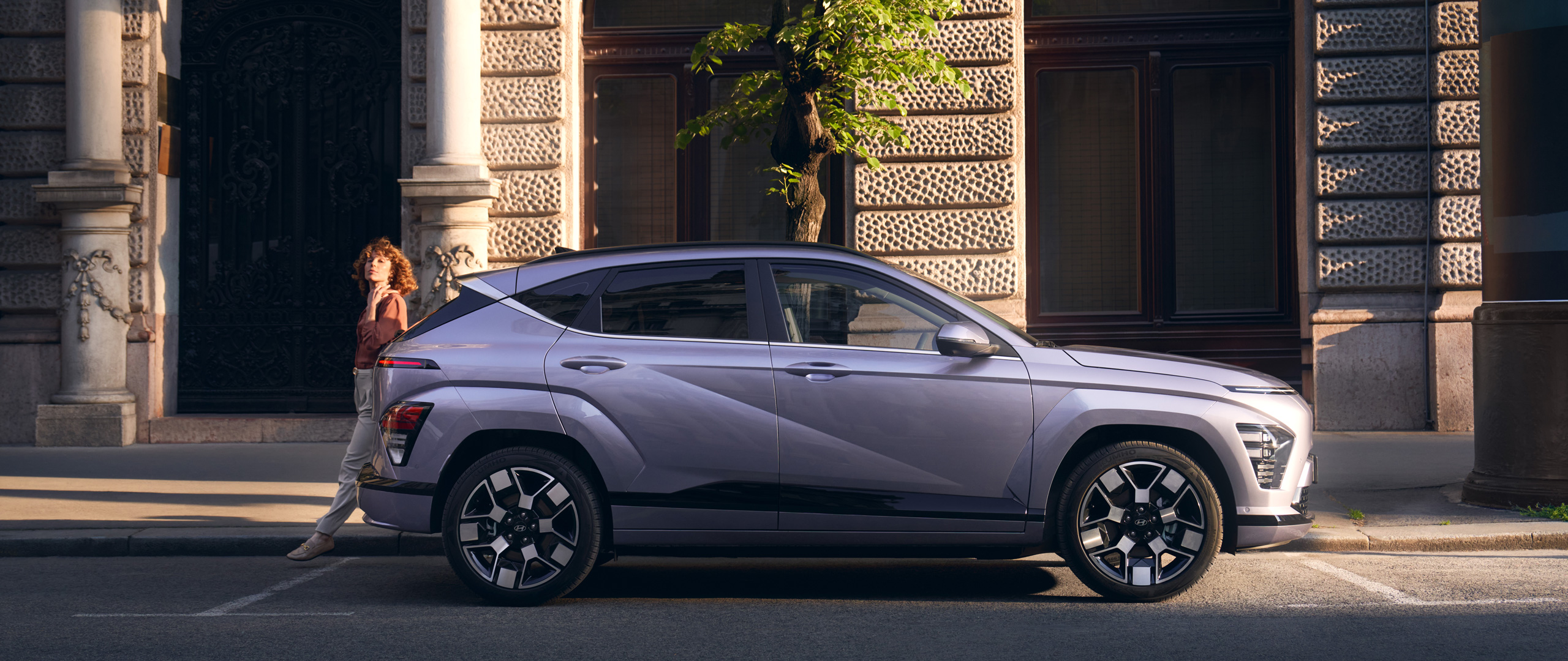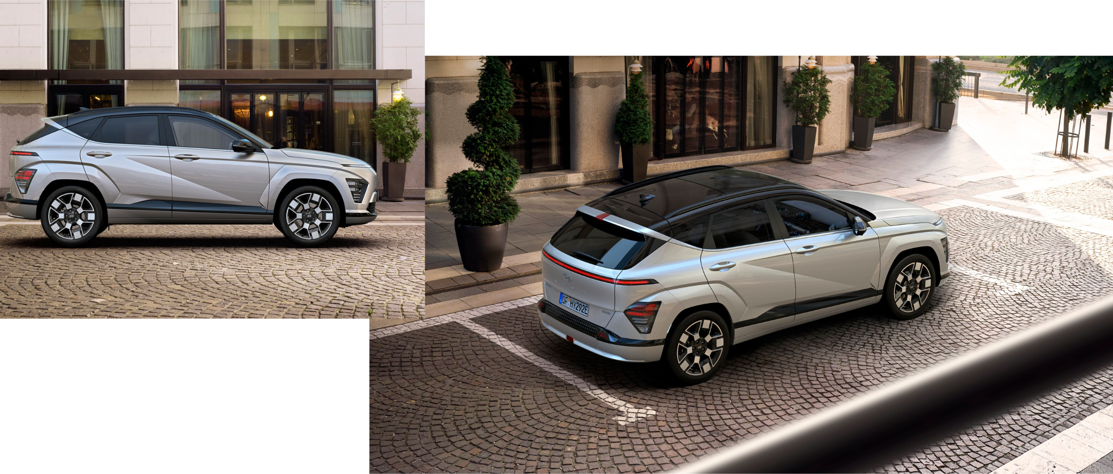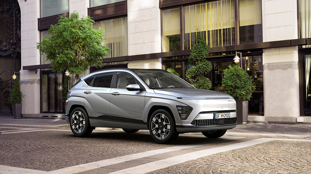 KONA Electric dinamiskais stils ir akcentēts ar drosmīgi veidotu riteņu arku apdari virsbūves krāsā ar integrētiem priekšējiem un aizmugurējiem lukturiem, kas piešķir robustu izskatu. Precīzās diagonālās, parametriskās virsmas ir harmonijā ar matēti hromētajiem moldingiem.