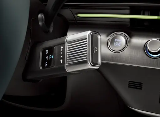 Elektroniskais pārnesumu pārslēgs ir pārvietots no viduskonsoles uz stūres statni, atbrīvojot vietu viduskonsolē.