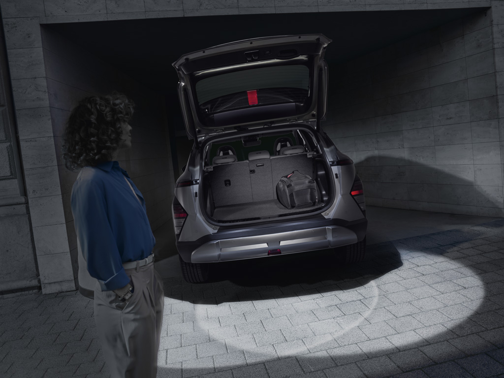 Izjūtiet priekšrocības, ko sniedz 466 litrus ietilpīgs bagāžas nodalījums (ar paceltiem sēdekļiem) – par 30% vairāk nekā iepriekšējam KONA.