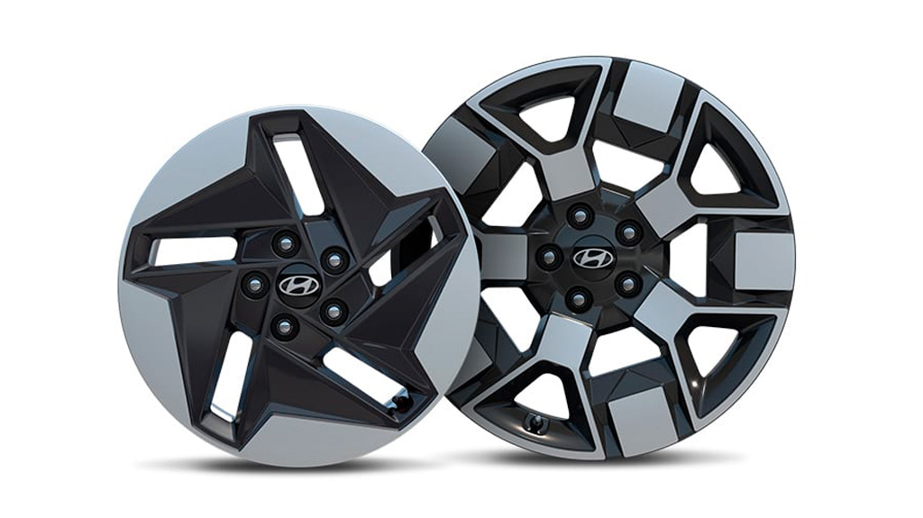 KONA Electric ir aprīkots ar 17" divtoņu Carbon Gray krāsas vieglmetāla diskiem. Premium modelim papildu aprīkojumā ir pieejami 19" vieglmetāla diski divtoņu Glossy Black krāsā.
