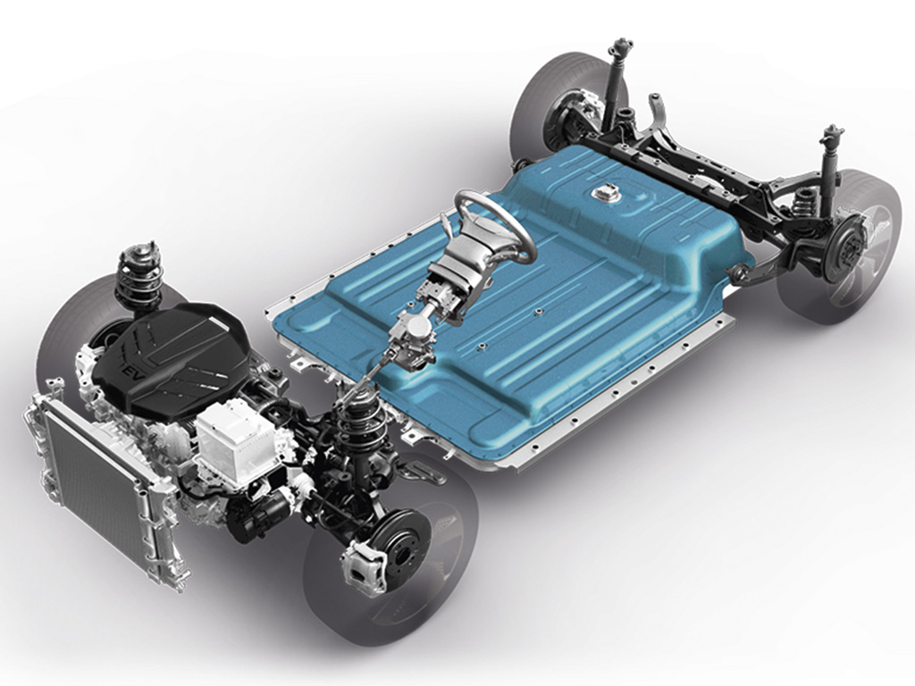 Īpaši veidotā SUV platforma ir ļāvusi efektīvi izmantot vietu, uzstādot akumulatorus. Inovatīvā akumulatora termiskās pārvaldības sistēma nodrošina augstāku akumulatora efektivitāti un ilgāku kalpošanas laiku. Tai ir gaisa kondicionēšanas sistēmai pievienota ūdens dzesēšana un apsilde ar elektrisko sildelementu.