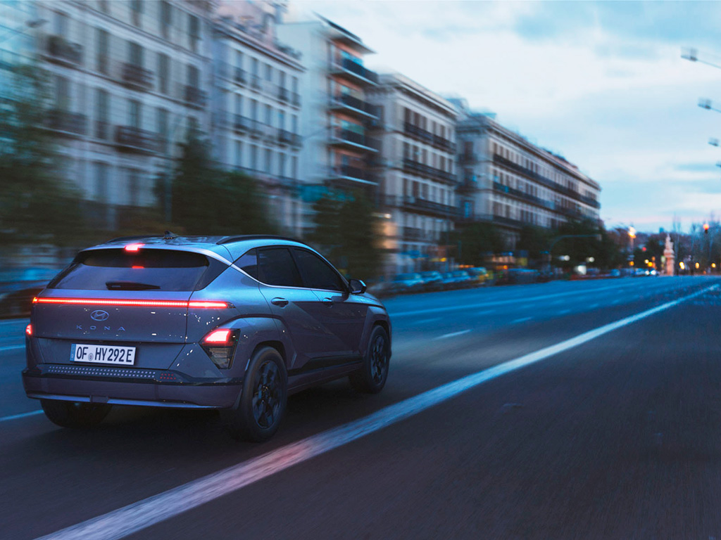 Aizmugures Pixelated Seamless Horizon lukturi atspoguļo priekšpuses dizainu un piešķir KONA Electric harmonisku kopējo izskatu, kas īpaši izceļas starp apkārtējiem.