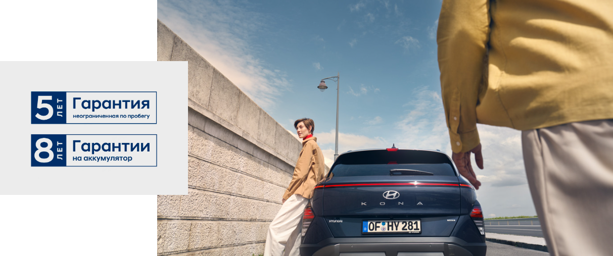 На все модели Hyundai предоставляется гарантия 5 лет без ограничения пробега. Кроме того, гарантия на высоковольтные аккумуляторы для гибридных и электрических моделей автомобилей составляет 8 лет или 160 000 километров пробега.